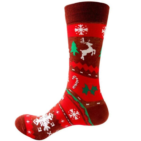 Originalaus rašto kalėdinių kojinių pora. Pagaminta iš storos ir šiltos medžiagos, puikiai apsaugančios nuo šalčio. Aukšto kirpimo ir gerai priglundanti elastinė juosta suteikia didelį komfortą ir neleidžia paslysti. Medžiaga pralaidi orui, neleidžia kojoms prakaituoti. Specifikacija: Medžiaga: poliesterio trikotažas. Dydis: 37-44. Kiekis: 1 pora. Spalva: kaip parodyta paveikslėlyje. Pakuotė: folija.