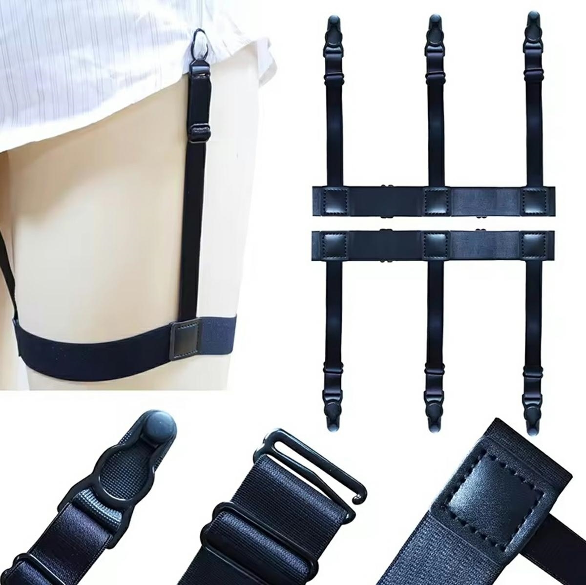 Laikikliai, petnešos, kad jūsų marškiniai visada būtų tvarkingi. Produkto savybės: Galimybė reguliuoti juosmenį ir šlaunis. Diržai yra saugūs kūnui ir mūsų drabužiams. Specifikacija: Medžiaga: poliesterio audinys Apimtis: nuo 41 iki 65 cm Diržo plotis: 2,5 cm Atstumas tarp juostelių: 10,5 cm Aukštis (dirželis): 11-19 cm Spalva: juoda Pakuotė: folija