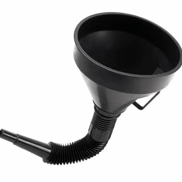 Dviejų dalių kuro/alyvos piltuvas su filtru. Plataus skersmens užpildas ir nuimamas lankstus vamzdelis leidžia lengvai pilti skysčius į baką. Produkto savybės ir specifikacijos: Medžiaga: PP plastikas. Ilgis (vamzdis): 25 cm. Ilgis (bendras): 37 cm. Skersmuo (viršuje): 13 cm. Juoda spalva. Plastikinė pakuotė.