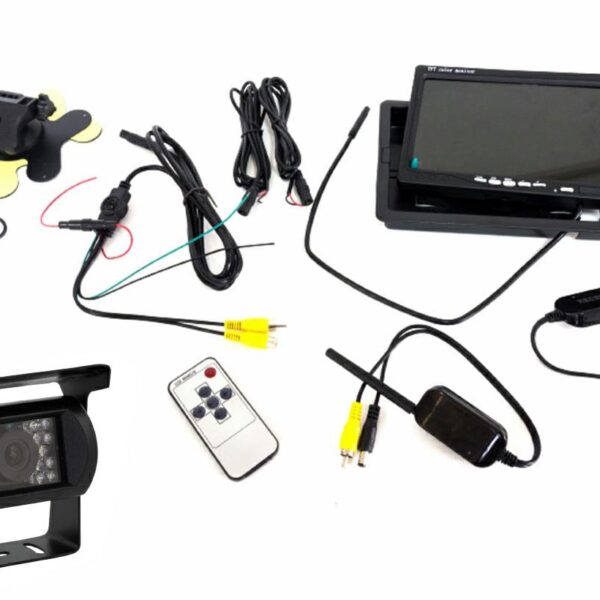 7 colių monitoriaus ir galinio vaizdo kameros su naktiniu matymu komplektas – belaidis 2,4Ghz Wireless kameros pajungimas. Čia yra viskas ko jums reikia, jei automobilis neturi gamyklinio LCD ekrano. Šią sistemą sudaro 7 colių TFT LCD ekranas, vaizdo kamera su atvaizduojamu atstumo rėmeliu bei naktiniu 18 vnt. IR LED apšvietimu, ekrano ir kameros belaidis 2,4Ghz…