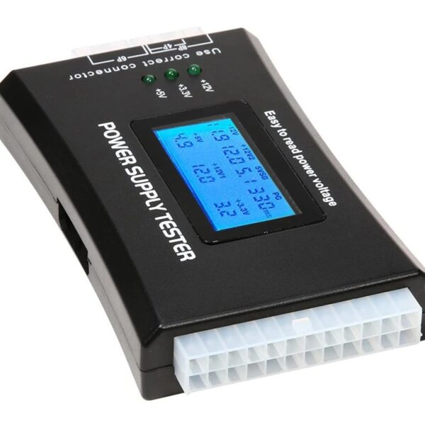 Kompaktiškas kompiuterio maitinimo šaltinio testeris. LCD ekranas su apšvietimu. Prietaisas turi garso signalizaciją apie klaidingus matavimus ir viršytus diapazonus bei LED diodus. Produkto savybės ir specifikacijos: Kompaktiškas kompiuterio maitinimo šaltinio testeris. Nepakeičiamas diagnostikos įrankis kompiuterių servise. Greitas veiksmas ir puikus naudojimo paprastumas. Medžiaga: Plastikas Maitinimas: išorinis (matuojant) LCD ekranas su apšvietimu Garso signalizacija (nėra galios…