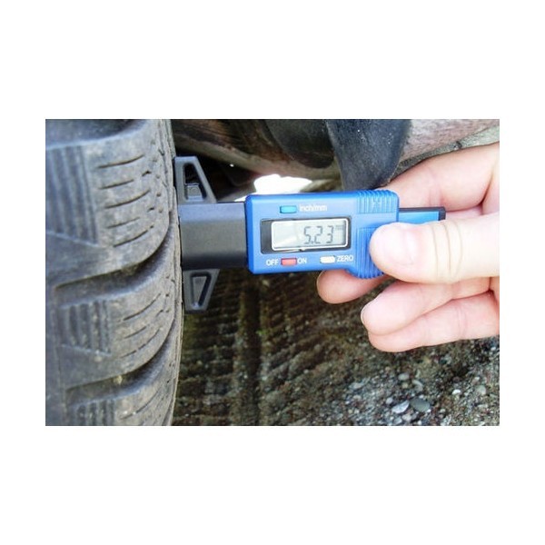 Tnka matuoti automobilių, motociklų, dviračių ir kitų padangų protektoriaus gylį. Didelis LCD ekranas, lengva skaityti. Baterijos pridedamos.
