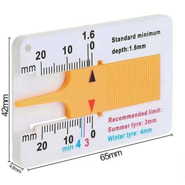 Padangų protektoriaus gylio matuoklis 0 – 20 mm Mechaninis dizainas Kompaktiškas dizainas Paprastas ir lengavs naudojimas Svoris: 12g. Išmatavimai: 65X42X4.8 mm Protektoriaus gylis negali būti mažesnis nei: žiemą 3 mm. vasarą 1,6 mm Pagal Europos teisės aktus vasarinių padangų protektoriaus gylis turi būti bent 1,6 mm per visą padangos apskritimą. Žieminėms padangoms padangų gamintojai rekomenduoja…