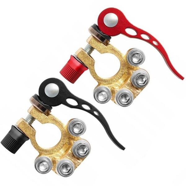 Dviejų spaustukų rinkinys (teigiamas ir neigiamas). Universalūs spaustukai – tinka 6V ir 12V akumuliatoriams. Jie leidžia greitai atjungti ir prijungti akumuliatorių. Montavimas labai paprastas – tiesiog perkelkite laidus iš esamų gamyklinių gnybtų naudojant 8/10 mm atvirą veržliaraktį. Specifikacija: Medžiaga: žalvaris + plienas + plastikas Paskirtis: 6V / 12V elektros instaliacija Maksimali srovė: 800A Matmenys (visas…