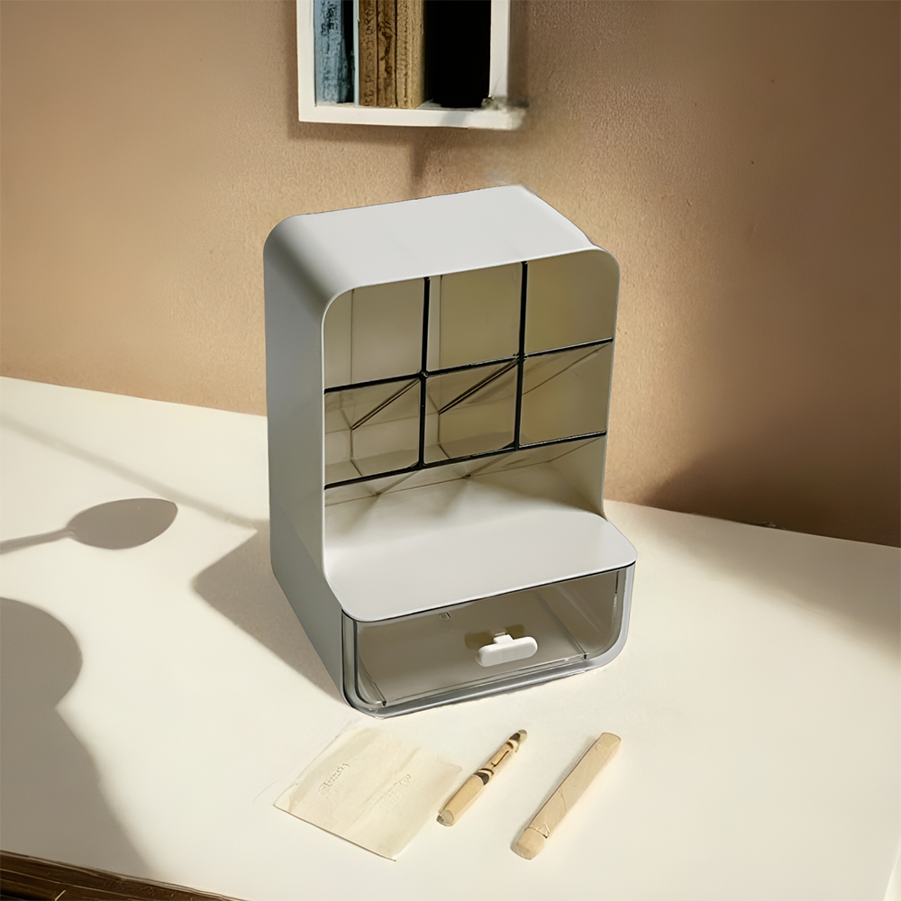 Daugiafunkcinė stalo organizavimo dėžutė su stalčiumi, 21.5 x 14.5 x 13.5 cm Tvarka ant stalo dar niekada nebuvo tokia estetiška! Ši kompaktiška ir stilinga stalo organizavimo dėžutė puikiai tinka biurui, mokykliniam stalui ar kosmetikos laikymui. Dėl skaidrių skyrių lengvai matysite, kur kas sudėta, o papildomas stalčius suteiks daugiau vietos smulkmenoms. Ypatybės: Matmenys: 21.5 x 14.5…