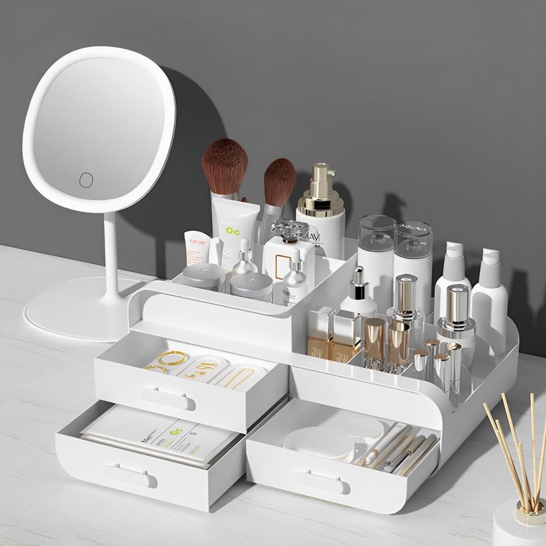 Kosmetikos ir papuošalų organizatorius su 3 stalčiais, 28 x 18 x 12,5 cm Sutvarkykite savo kosmetiką, papuošalus ir odos priežiūros priemones su šiuo stilingu ir funkcionaliu organizatoriumi. Daug vietos suteikiantis dizainas leis patogiai laikyti tiek aukštus buteliukus, tiek smulkius aksesuarus, o stalčiai padės paslėpti tai, ką norite laikyti neakivaizdžiai. Ypatybės: Matmenys: 28 cm (ilgis) x…