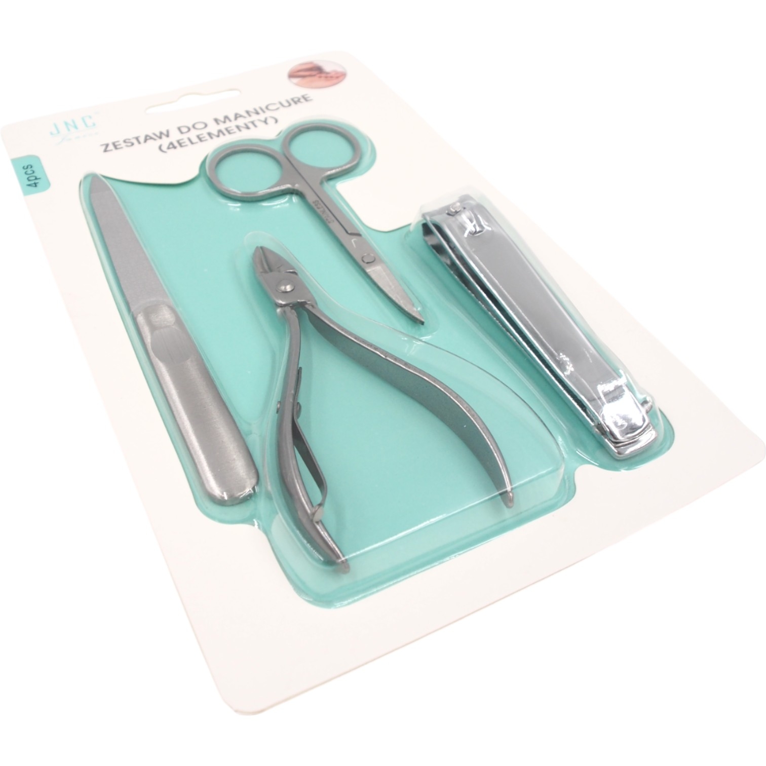 Manikiūro rinkinys „JNC“ – 4 dalių nerūdijančio plieno komplektas Kompaktiškas ir funkcionalus manikiūro įrankių rinkinys, būtinas kiekvienam, siekiančiam tvarkingų ir prižiūrėtų nagų namuose ar kelionėse. Rinkinį sudaro 4 pagrindiniai nerūdijančio plieno įrankiai, skirti nagų kirpimui, formavimui ir odelių priežiūrai. Rinkinį sudaro: Nagų žnyplutės (kirpimo žirklutės) Odelių žirklutės Dvipusė nagų dildė Nagų kirptukas Pagrindiniai privalumai: Pagaminti…
