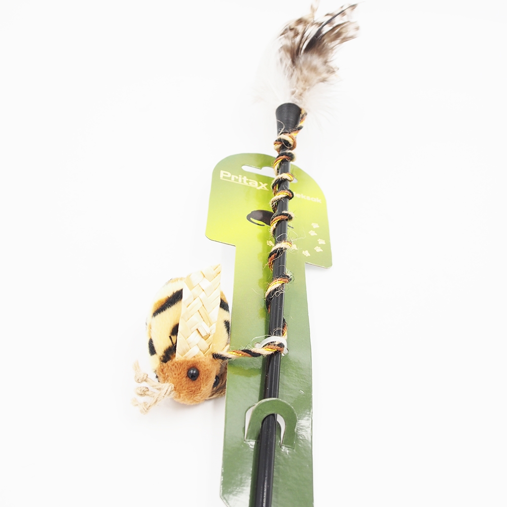 Katinų žaidimų lazdelė su plunksnomis ir bitute „Pritax“ Padovanokite savo katei aktyvią pramogą ir medžioklės džiaugsmą su šia interaktyvia „Pritax“ žaidimų lazdele. Lengva ir patogi laikyti, su judančia virvele, kurioje tvirtinamos plunksnos ir žaislinė pelė – šis žaislas žadina katės instinktus ir skatina judėjimą. Savybės: Su minkšta bitute ir plunksnomis – imituoja natūralius grobio judesius…