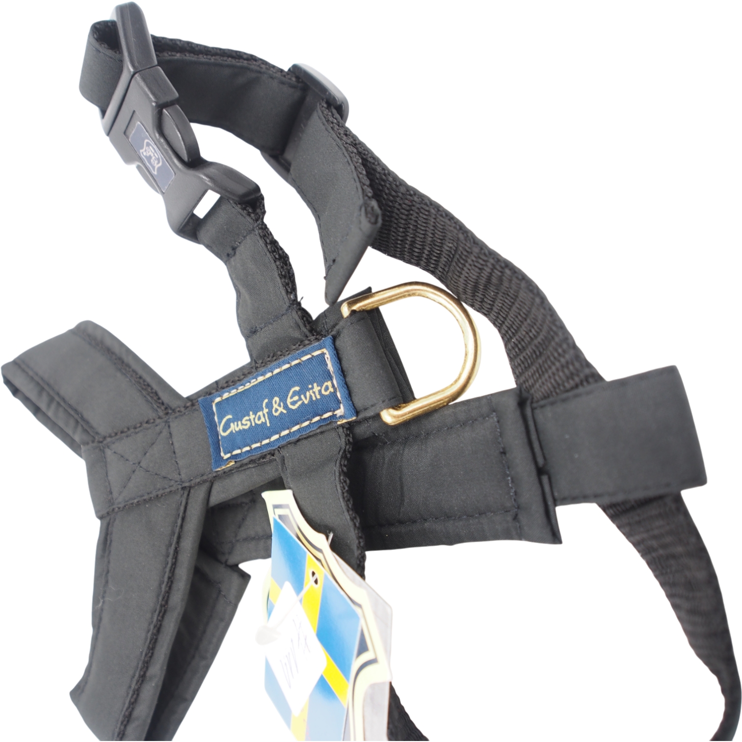 Gustaf & Evita juodos spalvos petnešos šunims, dydis S Klasikinio dizaino ir aukštos kokybės Gustaf & Evita petnešos – patikimas pasirinkimas mažiems šunims. Pagamintos iš tvirto, tačiau minkšto audinio, šios petnešos suteikia komfortą kasdienių pasivaikščiojimų metu ir neapsunkina šuns judesių. Reguliuojami dirželiai leidžia tiksliai pritaikyti dydį, o patvarus plastikinis užsegimas užtikrina saugumą. Savybės: Dydis: S…