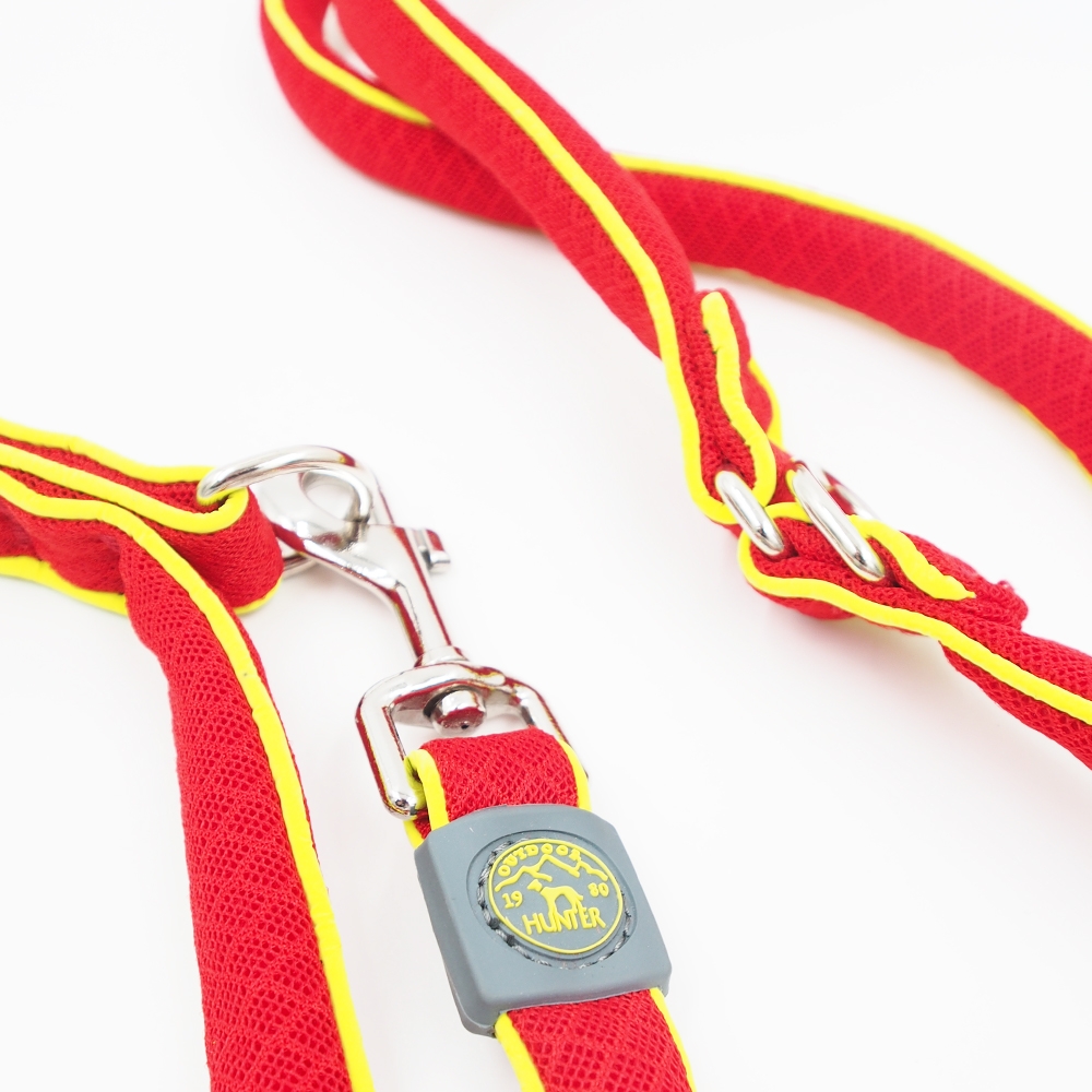 Hunter OUTDOOR pavadėlis, 20/200 cm Hunter OUTDOOR serijos pavadėlis – tai patikimas pasirinkimas aktyviems šunų šeimininkams. Ryškios raudonos spalvos dizainas su geltonomis detalėmis ne tik atrodo stilingai, bet ir padidina matomumą tamsiuoju paros metu. Tvirtas tinklelio tipo audinys užtikrina atsparumą nusidėvėjimui, o paminkštintas paviršius garantuoja komfortą tiek augintiniui, tiek vedančiajam. Dėl trijų reguliavimo žiedų pavadėlio…