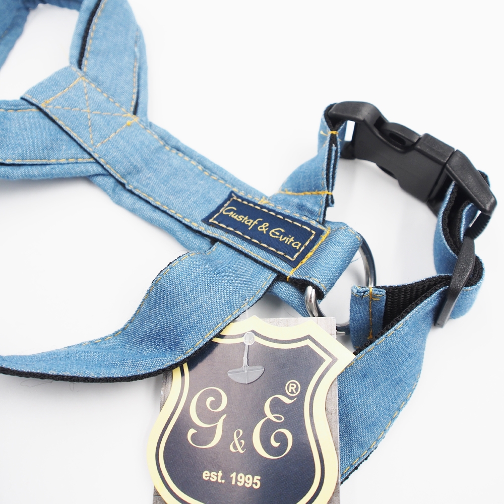 Gustaf & Evita džinsinės šunų petnešos, 26/45 cm (kaklas/krūtinė) „Gustaf & Evita“ džinsinio stiliaus petnešos – tai patogus ir išskirtinis aksesuaras mažiems šunims ar šuniukams. Šios 26/45 cm dydžio petnešos (kaklo apimtis – 26 cm, krūtinės – 45 cm) puikiai priglunda prie augintinio kūno, o paminkštinta struktūra užtikrina maksimalų komfortą net ir ilgų pasivaikščiojimų metu….
