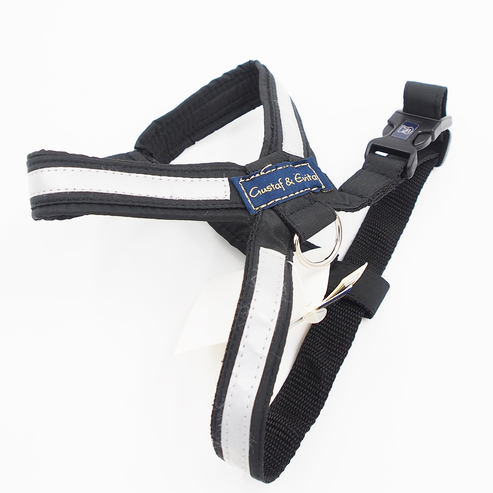 Gustaf & Evita atšvaitinės šunų petnešos – juodos su baltu atšvaitu Dydis: Mopsas, Džeko Raselo terjeras. Kaklas 40 cm, krūtinė 70 cm. Gustaf & Evita petnešos su integruota atšvaitine juosta – tai puikus pasirinkimas tiems, kurie rūpinasi savo šuns saugumu tamsiuoju paros metu. Šios ergonomiškos petnešos ne tik patogios, bet ir puikiai matomos net ir…