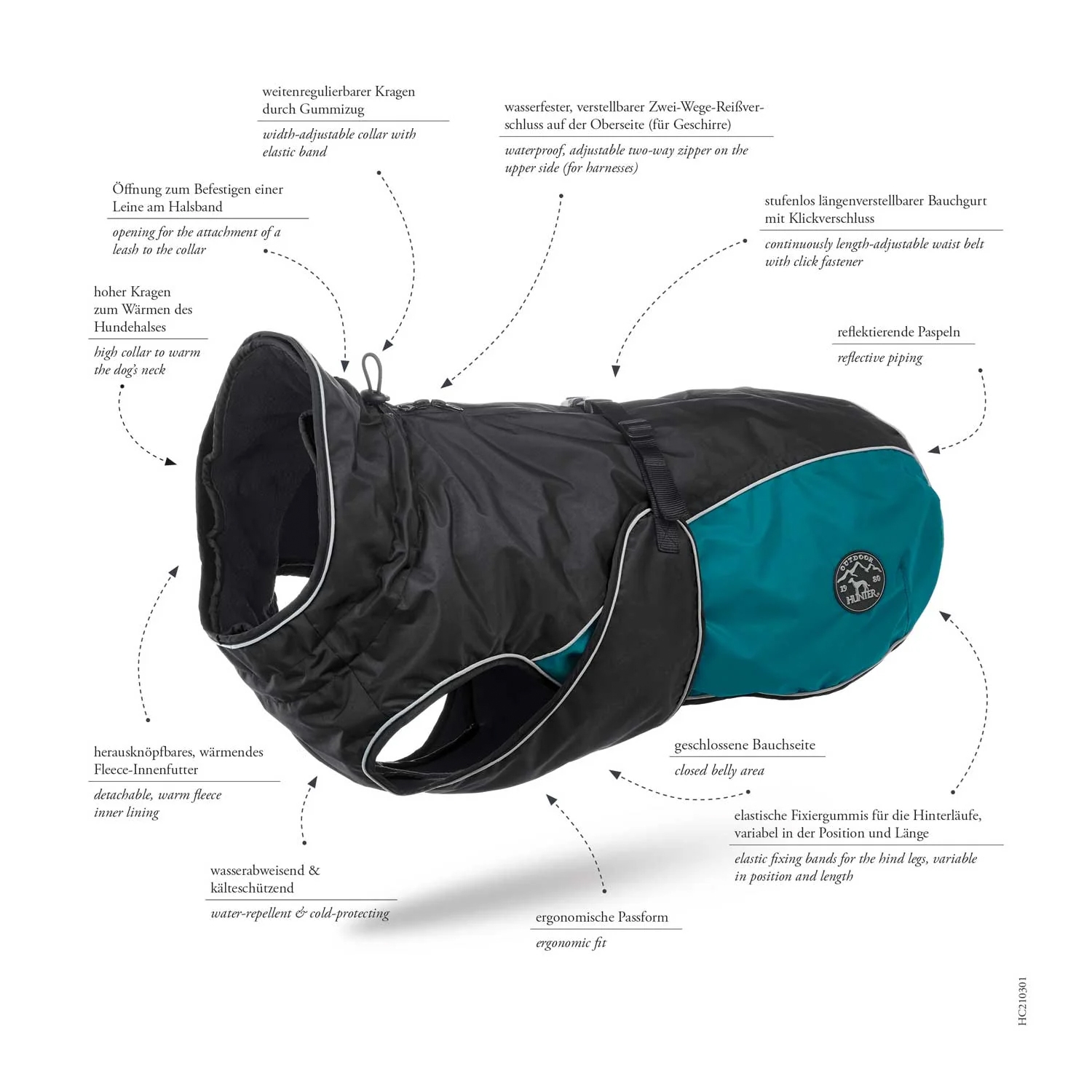 Hunter žieminis šunų paltukas „Tampere“ (petrol spalvos), dydis 65 (kaklas 40–76 cm, krūtinė 70–104 cm) „Hunter Tampere“ – tai žieminis šunų paltukas, sukurtas maksimaliai apsaugai ir patogumui net sudėtingiausiomis oro sąlygomis. Dėl aukštos kokybės medžiagų, reguliuojamų dalių ir išsegamo flisinio pamušalo, šis modelis idealiai tinka tiek trumpaplaukiams, tiek jautriems šalčiui šunims. Savybės: Dydis 65 –…