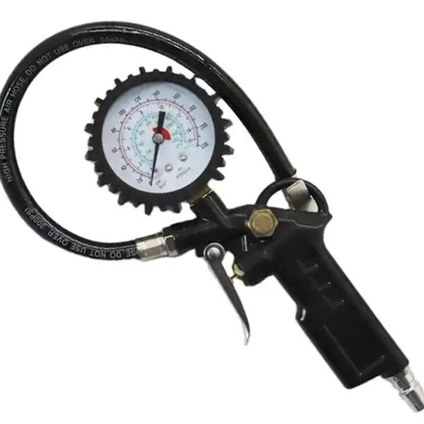 Kompaktiškas oro slėgio matuoklis. Prekės savybės: Kompaktiškas pneumatinis pistoletas padangoms pripūsti. Paprasta įrenginio konstrukcija palengvina darbą. Aiškus indikatorius (slėgio matuoklis) leidžia peržiūrėti esamą slėgį keliuose vienetuose vienu metu (PSI / BAR). Patogi, lanksti žarna su standartiniu vožtuvu užtikrina patogų įrenginio valdymą. Specifikacija: Medžiaga: PP plastikas + metalas Aiškus indikatorius (slėgio matuoklis) Maksimalus slėgis: 230 PSI…