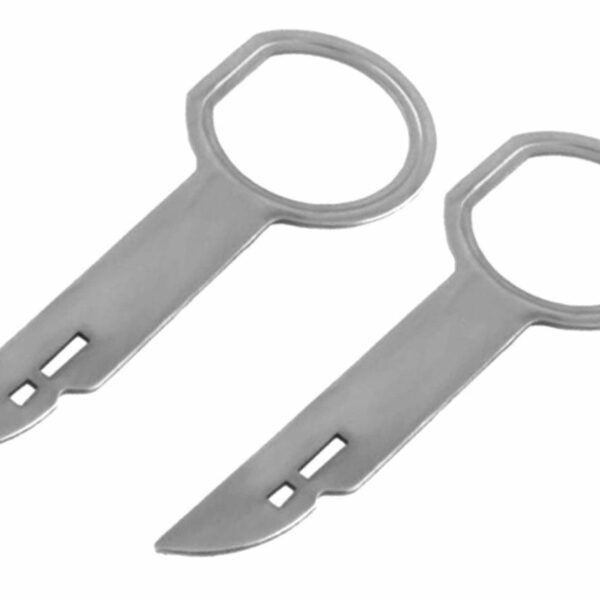 Universalus 2 raktų (išėmimo įrankių) rinkinys skirtas išimti automobilio radiją ar navigacijos sistemas. Prekės savybės: Visiškai naujas, kokybiškas produktas. Profesionalus dviejų raktų rinkinys radijo, palydovinės navigacijos išardymui. Mygtukai leidžia greitai ir lengvai išimti radiją/navigaciją iš automobilio nepažeidžiant automobilio skydelio/prietaisų skydelio – radijo imtuvą šiais klavišais išmontuoti yra nereikšminga ir galima atlikti per kelias sekundes. Suderinamas…