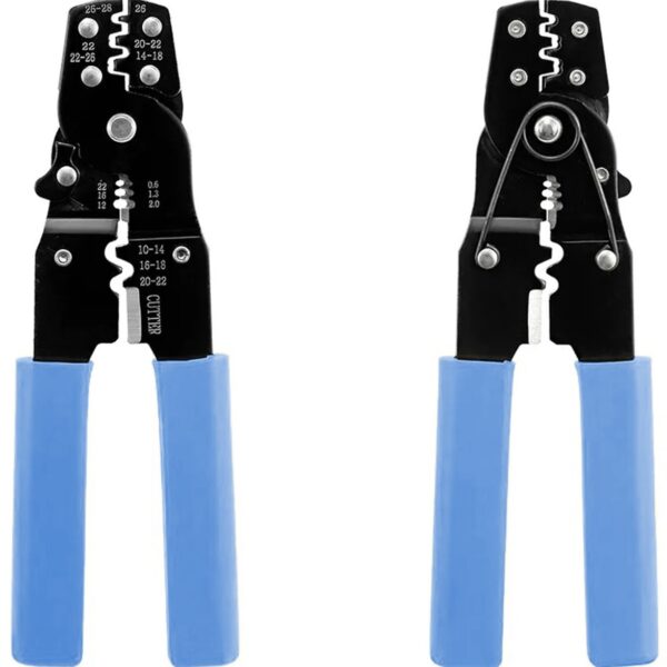 Universalus gofruotojas kištukams, neizoliuotoms ir izoliuotoms jungtims, su papildomu vielos pjovimo peiliu. Tinka laidų ir elektronikos montuotojams, bei įprastoms namų reikmėms. Produkto savybės ir specifikacijos: Papildomas peilis kabeliams pjauti. Minimalus kabelio skerspjūvis: 0,08 mm2. Maksimalus kabelio skerspjūvis: 5,26 mm2. HRC kietumo skalė: 55-60 HRC Galimybė gaminti jungtis/laidus, kurių storis svyruoja nuo 10 iki 28 AWG….