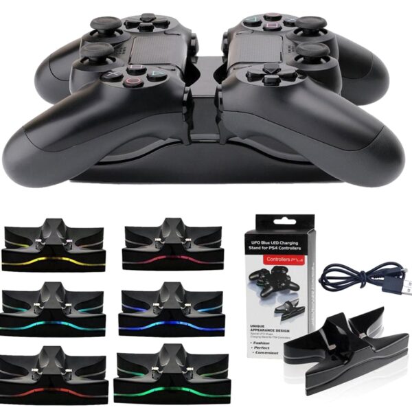 Kompaktiška įkrovimo stotelė, skirta valdikliams, skirtiems „PlayStation 4“ įkrauti. Produkto savybės ir specifikacijos: Mikroprocesoriaus įkroviklis, skirtas visiems oficialiems „PLAYSTATION 4“ valdikliams. Stotis suderinama su visais PS4, PS4 Slim ir galingesnio modelio PS4 PRO valdikliais. RGB LED apšvietimas palei korpusą – įdomi detalė, deranti prie PS4 konsolės stiliaus. Diodai rodo valdiklio įkrovimo lygį! Elegantiškas dizainas, stilistiškai…