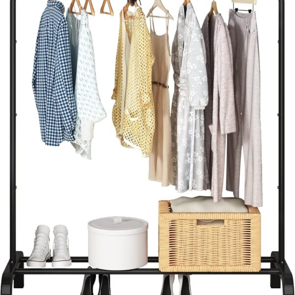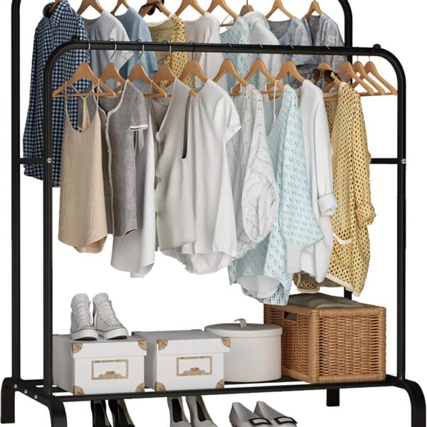 Dviejų lygių metalinė drabužių kabykla su batų lentyna, 150 x 110 x 54 cm Ieškote funkcionalaus sprendimo drabužių ir batų laikymui? Ši dviguba drabužių kabykla su papildoma lentyna apačioje – puikus pasirinkimas tiek namų spintai, tiek miegamajam ar prieškambariui. Tvirta metalinė konstrukcija užtikrina stabilumą ir ilgaamžiškumą, o du pakabinimo strypai leidžia patogiai rūšiuoti drabužius pagal…