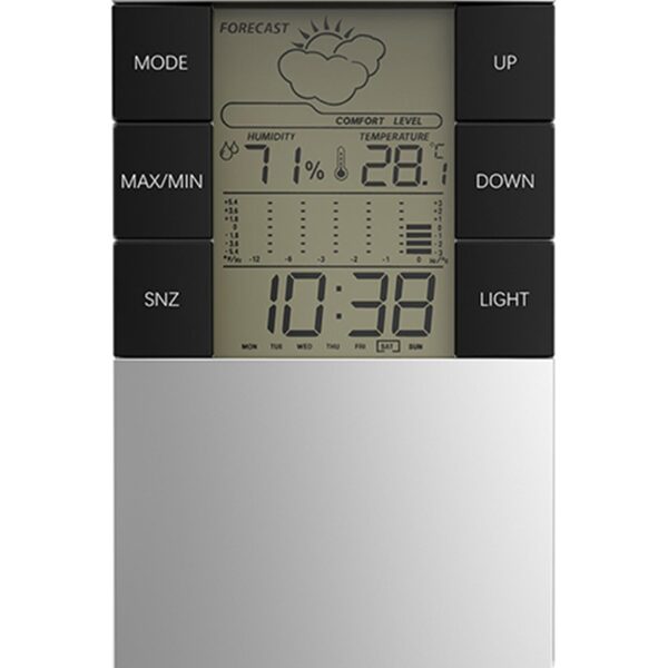 Elektroninis termometras namams. Kompaktiški matmenys ir akumuliatoriaus veikimas užtikrina naudojimo patogumą. Prietaisas rodo esamą temperatūrą ir oro drėgmę patalpoje. Taip pat yra laikrodis su žadintuvu, paprastas kalendorius ir orų prognozė. Didelis ir įskaitomas LCD ekranas su apšvietimu leidžia lengvai patikrinti matavimus. Prekės savybės: Visiškai naujas, kokybiškas produktas. Moderni ir vizualiai patraukli meteorologinė stotis su aiškiu…