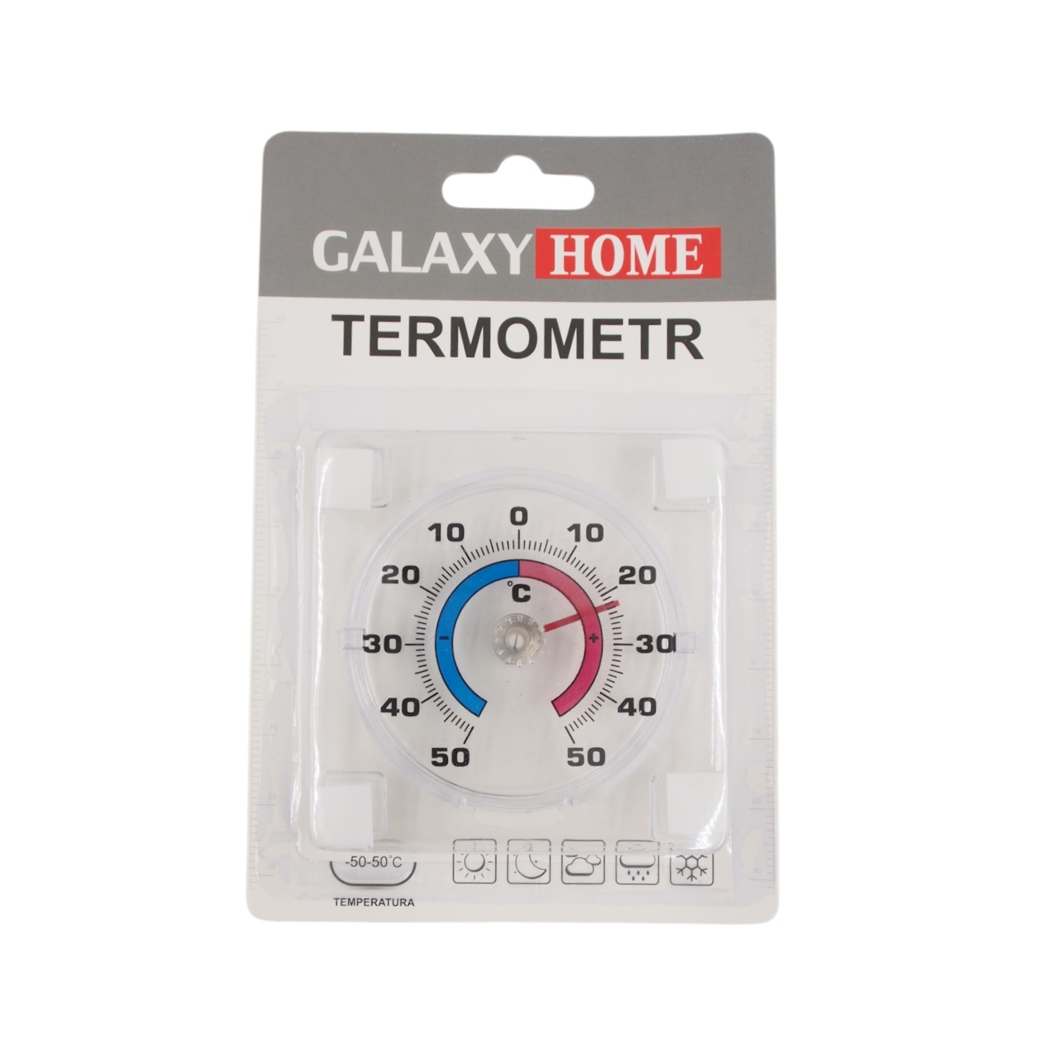 Kompaktiškas lauko termometras. Skirtas tvirtinti ant stiklo naudojant lipnią juostą (korpuso kraštuose). Klasikinis dizainas ir aiški skalė leidžia lengvai nuskaityti temperatūrą Celsijaus laipsniais. Specifikacija: Medžiaga: PP plastikas. Temperatūros diapazonas: -50° iki +50°. Tolerancija: +/- 1°. Matmenys: 7,5 cm x 7,5 cm. Storis: 1,7 cm. Spalva: kaip parodyta paveikslėlyje.