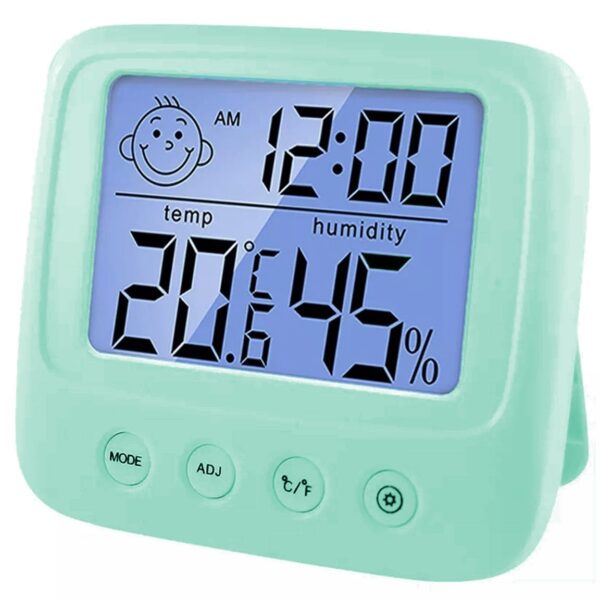 Vidinė, elektroninė oro stotis su įmontuotu temperatūros jutikliu ir higrometru – itin naudinga kiekvienuose namuose, ypač vaiko kambaryje, kur itin svarbu palaikyti tinkamą temperatūrą ir oro drėgmę. Įrengtas didelis, lengvai skaitomas LCD ekranas, rodantis visus svarbiausius matavimus ir bendrą kambario komfortą. Patogūs funkciniai mygtukai leidžia lengvai valdyti įrenginį. Lengvas montavimas dėl lipnios juostos korpuso gale….