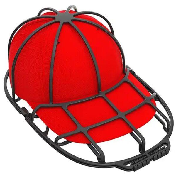 Praktiškas stovas kepurėms plauti. Puikiai apsaugo kepuraitę nuo sugadinimo skalbiant skalbimo mašinoje. Turi praktiškus segtukus, kurie neleidžia kepurei iškristi iš formos skalbimo metu. Atviras dizainas pagreitina išskalbtos kepurės džiūvimą. Produkto savybės ir specifikacijos: Medžiaga: plastikas Plotis (stogas): 22 cm Ilgis (bendras): 35 cm Skersmuo (dangtelis): 22 cm Aukštis: 11 cm Juoda spalva Plastikinė pakuotė