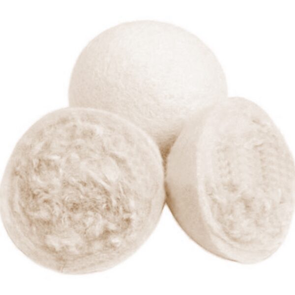3 vilnos kamuoliukų rinkinys automatinėms skalbinių džiovyklėms. Neleidžia drabužiams suskilti ir atsirasti būdingų pūkelių. Leidžia kruopščiau išgręžti drabužius ar patalynę, todėl skalbiniai tampa minkštesni ir greičiau išdžiūsta. Produkto savybės : Padaro skalbinius minkštus. Tinka visoms džiovyklėms. Medžiaga: vilna. Kamuolio skersmuo: 7 cm. balta spalva.