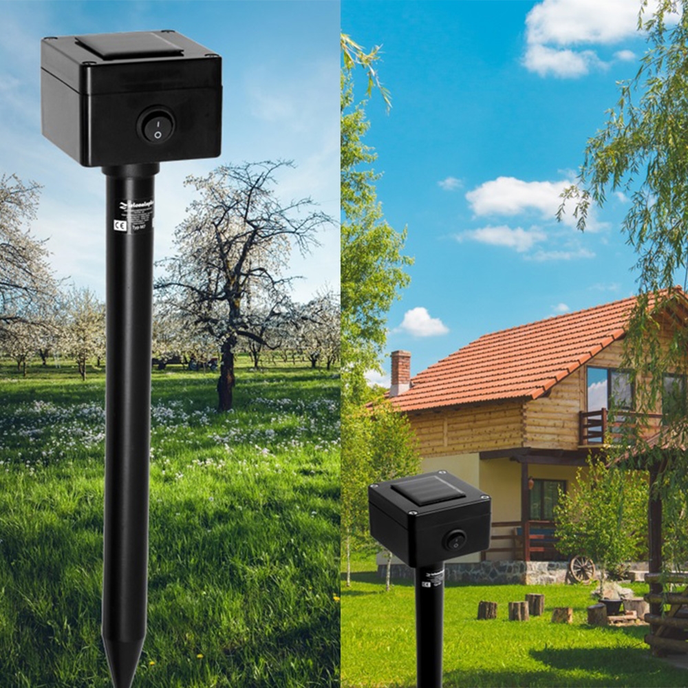Atgraso: kiškius, šunis, kates, lapes, kiaunes, voveres ir kitus panašaus dydžio gyvūnus Privalumai: Atbaido kenkėjus humaniškai be cheminių medžiagų naudojimo. Beveik negirdimas žmogui Aukštos kokybės „Greenmill” gamintojo baidyklė. CE ir Rohs serfitikatai Plastikas atsparus saulės spinduliams Nekenksmingas žmonėms ir gyvūnams! Kintamojo dažnio Kontrolė. Judesio sensoriaus reguliavimas. Šviesos indikatorius, taip pat atbaido gyvūnus šviesa. Veikimo diapazonas…
