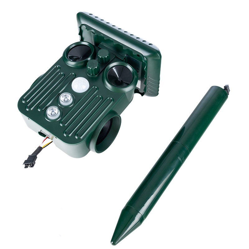 Efektyvus gyvūnų atbaidiklis, kurio veikimo principas yra skleidžiantis įvairius ultragarso dažnius ir stiprią LED šviesą.Skleidžiami garsai ir šviesos blyksniai labai vargina gyvūnus, todėl jie efektyviai atbaido juos nepakenkdami.Prietaisas įsijungs, kai gyvūnas pateks į judesio jutiklio diapazoną, o tai taupo energiją. Techniniai duomenys: maitinamas saulės energija – įmontuota 2200mAh baterija galimybė įkrauti per microUSB prievadą (kabelis…
