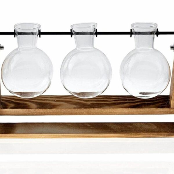 Hidroponinė vaza su trimis stikliniais puodais. Puikiai tinka auginti gėles ir žoleles namuose. Hidroponinė technika yra kultivavimas be dirvožemio, naudojant vandens ir mineralinės druskos tirpalus, kurie leidžia augalams augti nenaudojant dirvožemio. Jame yra estetinis medinis stovas. Jis puikiai tiks kaip vidaus apdaila, parodanti visą augalų šaknų sistemą. Prekės savybės: Hidroponinė vaza su trimis stikliniais puodais….