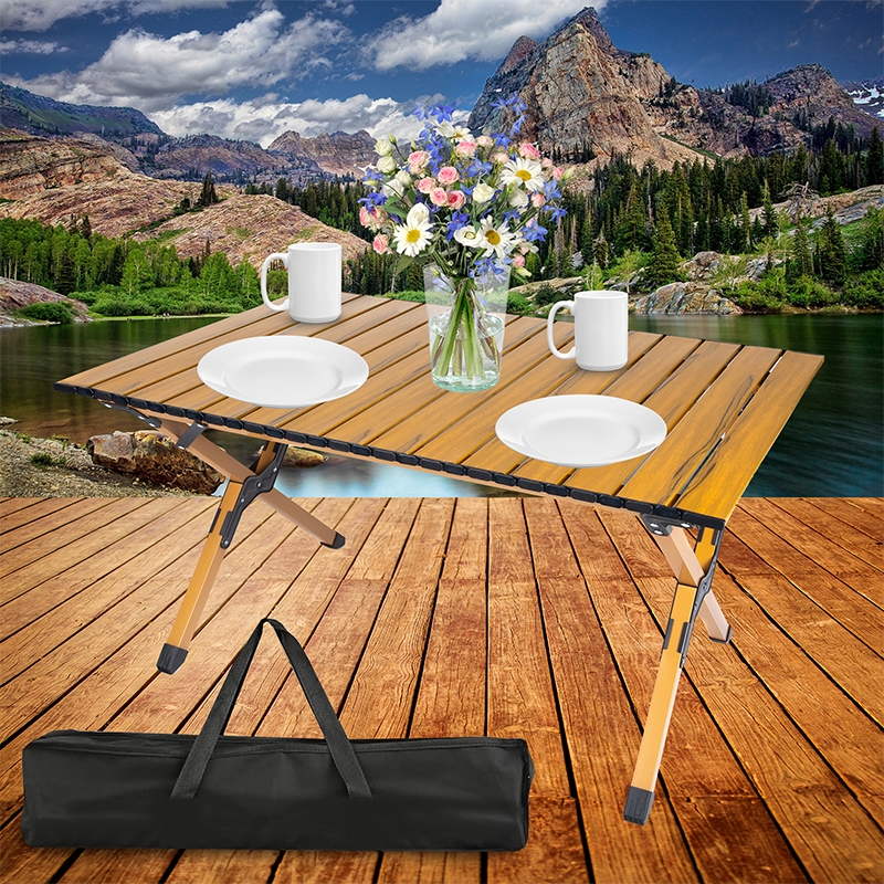 Iškylų stalas su lengvai prižiūrimu laipteliu. Surinkimas labai paprastas, tereikia išskleisti kojas ir išskleisti laiptelio viršų. Stalas pagamintas iš lengvo aliuminio. Viską galime neštis patogiame krepšyje (pridedama). Didžiausia leistina apkrova: 50 kg.Stalo matmenys: 117×59,5x44cmDėžutės matmenys: 75x20x17cm.