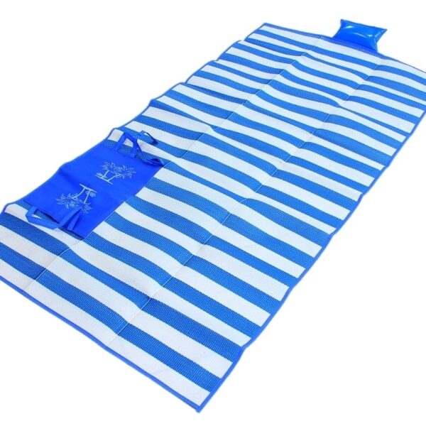 Neperšlampamas paplūdimio kilimėlis su papildoma pripučiama pagalve. Labai lengvai sulankstomas ir išskleidžiamas, itin patvarus – puikus tradicinės antklodės pakaitalas. Naudojimo komfortą pagerina įmontuota pagalvė. Jis yra labai lengvas, o sulankstytas gali būti užsegamas diržu, todėl daug lengviau nešiotis. Pagaminta iš patvarios medžiagos, lengvai valoma. Prekės savybės: Itin praktiškas paplūdimio kilimėlis, puikiai tinkanti degintis saulėtomis dienomis….