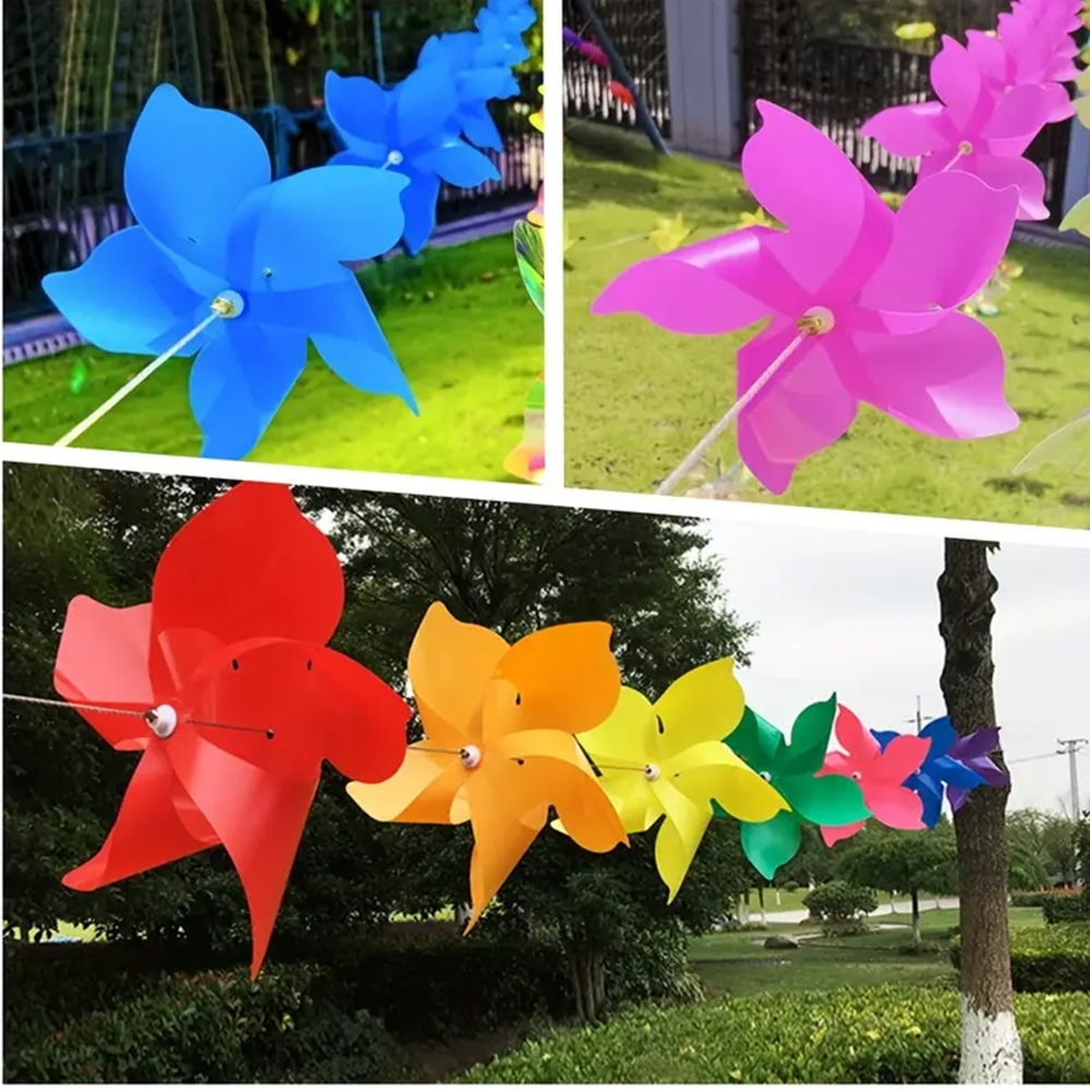 Spalvingi vėjo malūnėliai (10 vnt.) – 30 cm, su 10 m virve Įneškite žaismingumo ir spalvų į savo kiemą, sodą ar šventę su šiais ryškiais vėjo malūnėliais! Rinkinį sudaro 10 didelių, 30 cm skersmens spalvotų malūnėlių, suvertų ant tvirtos 10 metrų ilgio virvės. Jie ne tik puošia aplinką, bet ir sukasi net nuo menkiausio vėjo…