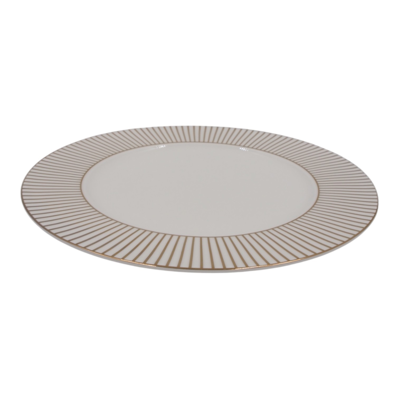 Keraminė lėkštė su auksinėmis linijomis, 27 cm Prabangi keraminė lėkštė, dekoruota subtiliomis auksinėmis linijomis, suteiks stalui elegancijos ir modernumo. Puikus pasirinkimas šventiniam serviravimui ar ypatingoms progoms, tačiau taip pat tinka ir kasdieniam naudojimui. Skersmuo: 27 cm Medžiaga: keramika Spalva: balta su auksinėmis dekoratyvinėmis linijomis Elegantiškas ir modernus dizainas Lengvai derinama su kitais indais Ši lėkštė…