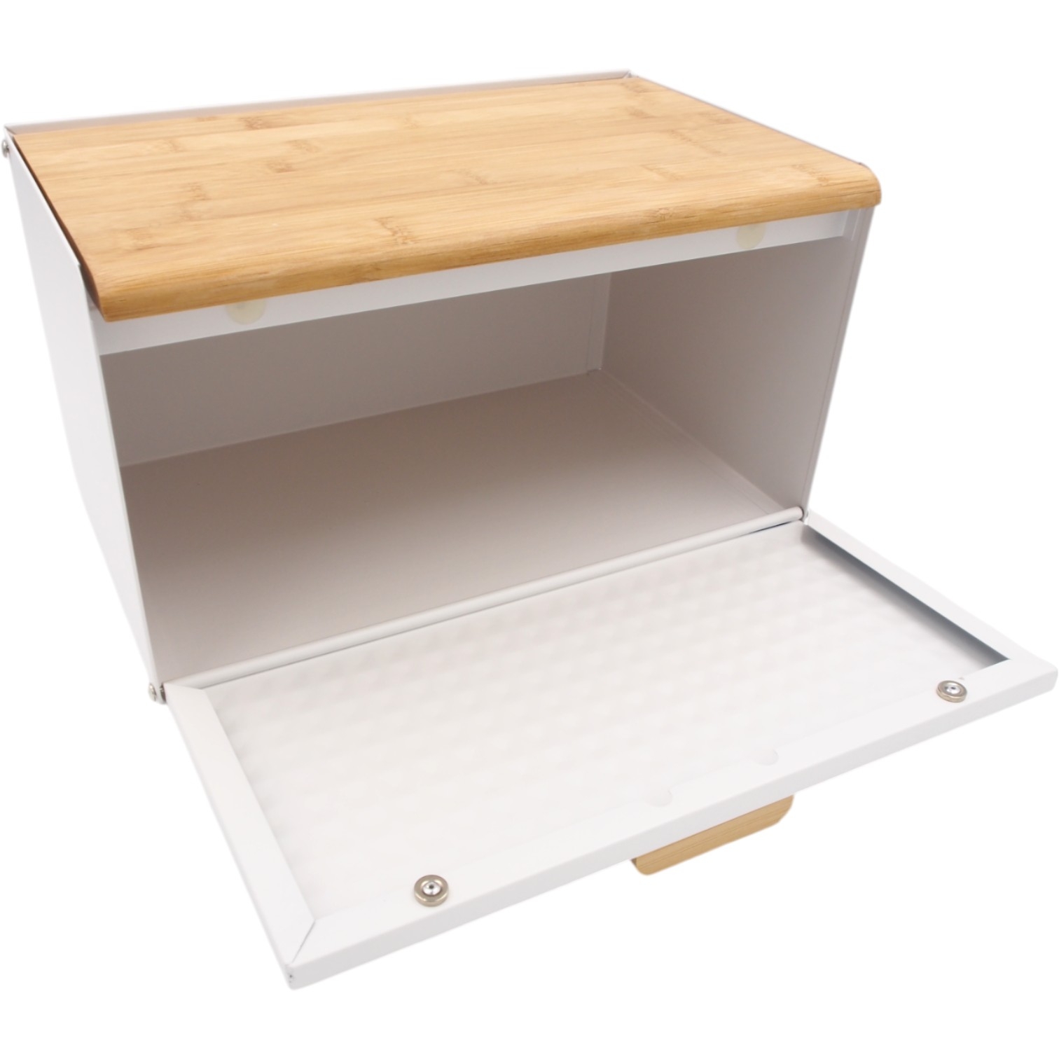 Metalinė duoninė su bambuko dangčiu Stilinga ir praktiška duoninė padės išlaikyti kepinius šviežius ilgiau ir tvarkingai laikyti juos virtuvėje. Pagaminta iš tvirto metalo su natūralaus bambuko dangčiu, kuris ne tik suteikia modernų akcentą, bet ir gali būti naudojamas kaip pjaustymo lentelė. Aukštos kokybės medžiagos – tvirtas metalinis korpusas ir natūralaus bambuko dangtis.2in1 funkcija – dangtis…