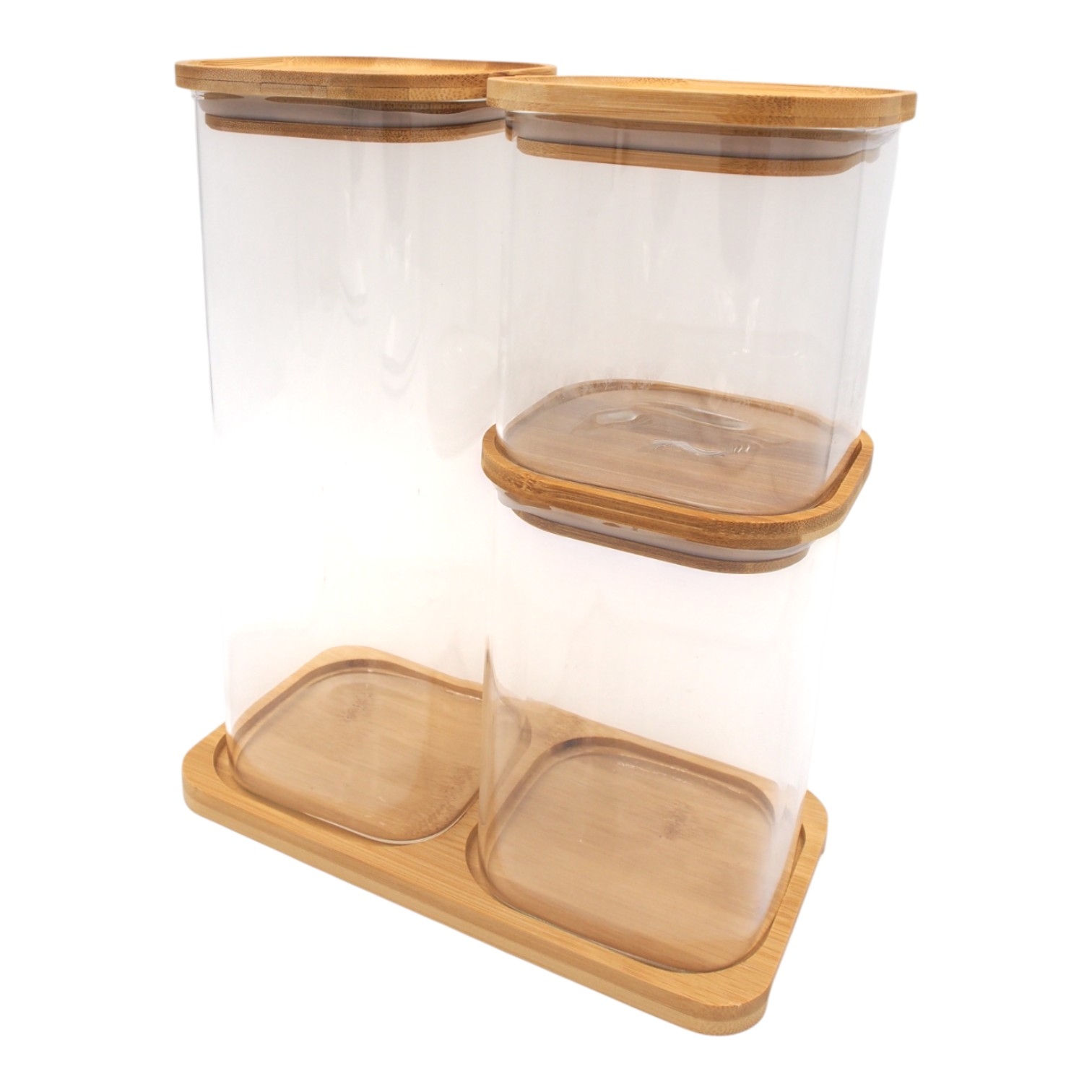 „O’lala Design“ stiklo indelių rinkinys su bambuko dangteliais ir stovu Stilingas bei praktiškas stiklo indelių rinkinys – puikus pasirinkimas maisto produktų laikymui ir virtuvės organizacijai. Skaidrūs indai leidžia lengvai matyti turinį, o natūralaus bambuko dangteliai su silikoniniu sandarikliu užtikrina sandarumą ir ilgesnį produktų šviežumą. Komplektą papildo bambukinis stovas, kuris padeda indelius laikyti tvarkingai ir patogiai….