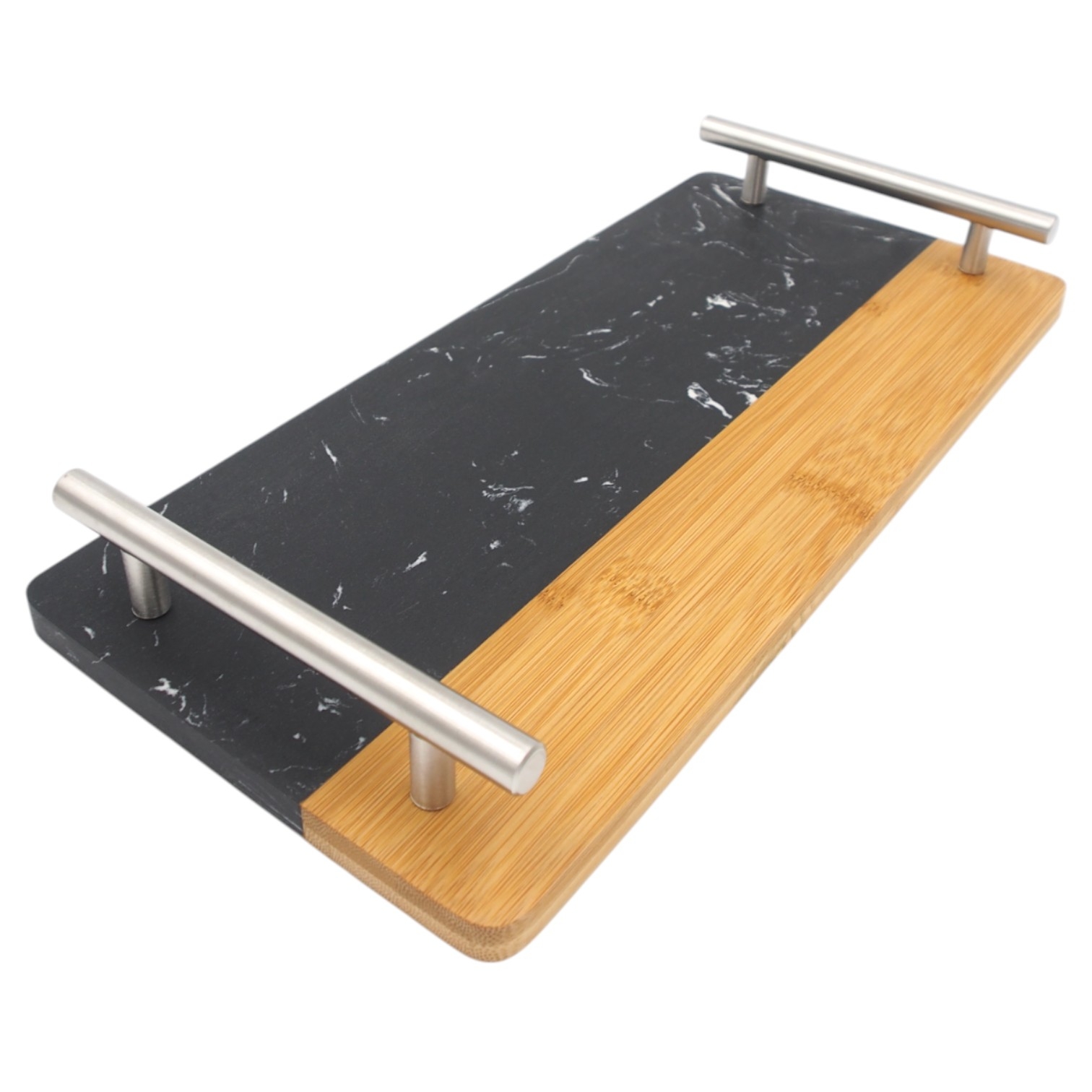 Marmurinis serviravimo padėklas su bambuko kraštais, 30 x 16 cm Stilingas ir praktiškas padėklas, pagamintas iš marmuro ir bambuko derinio. Puikiai tinka sūrių, užkandžių, desertų ar kitų patiekalų patiekimui. Marmuro paviršius yra lengvai valomas, o bambuko kraštai suteikia natūralumo bei elegancijos. ✔ Modernus dizainas – derinys iš marmuro ir bambuko ✔ Patvarus ir lengvai prižiūrimas…