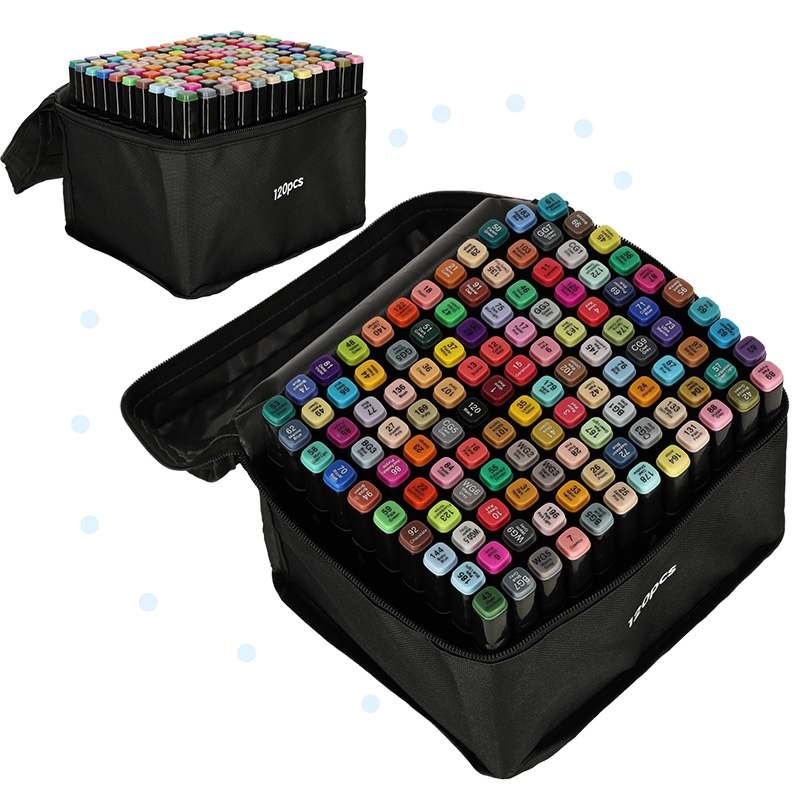 120 dvipusių markerių rinkinys su stovu ir dėklu