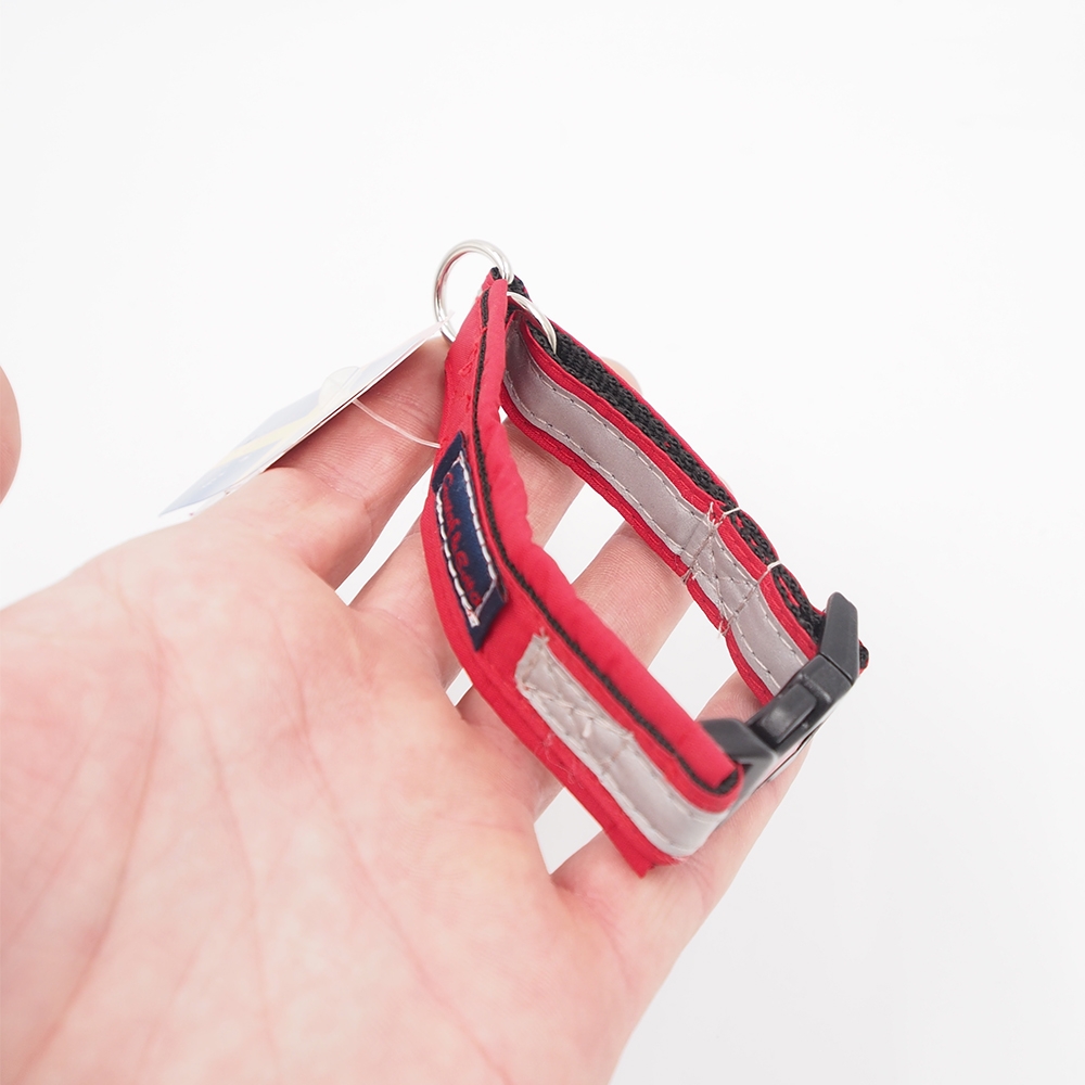 Stilingas ir praktiškas „Gustaf & Evita“ raudonos spalvos antkaklis – puikus pasirinkimas mažiems šunims. Pagamintas iš minkšto, tačiau patvaraus audinio, su integruotomis atšvaitinėmis juostomis, užtikrinančiomis geresnį matomumą tamsiu paros metu. Lengvas plastikinis užsegimas ir patogus metalinis žiedas pavadėliui – tai komfortas ir saugumas kiekviename pasivaikščiojime.