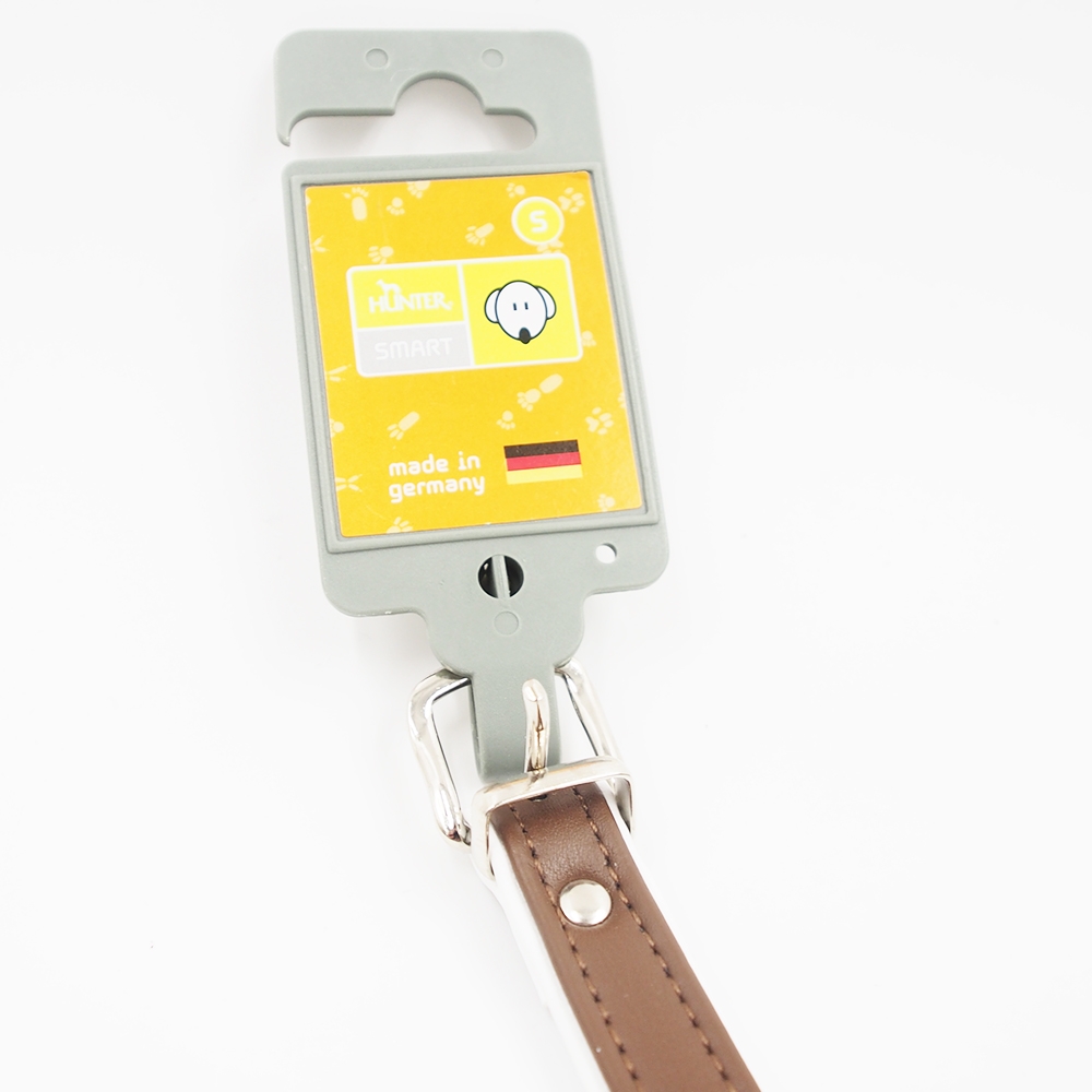 Klasikinio dizaino ir vokiškos kokybės HUNTER odinis antkaklis – puikus pasirinkimas mažų ir vidutinio dydžio šunų šeimininkams. 32–38 cm reguliuojamo ilgio modelis pagamintas iš tvirtos, bet švelnios odos, užtikrinančios augintinio komfortą bei ilgaamžiškumą.