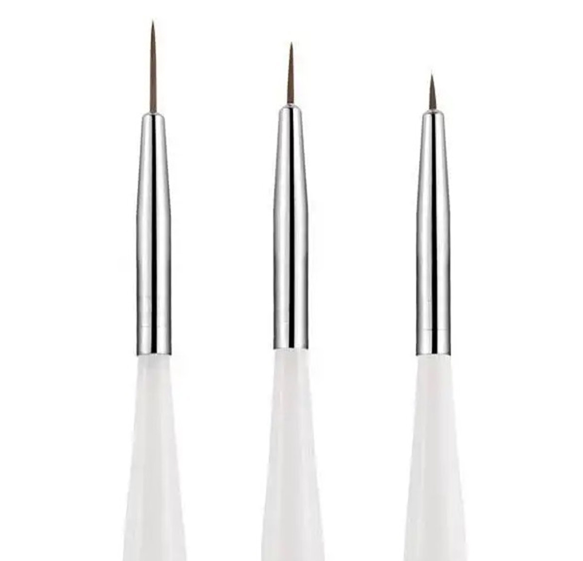 3vnt. profesionalių kosmetinių šepetėlių rinkinys, dažniausiai naudojamas geliui ir dekoracijoms. Jie skirti nagų formavimui gelio būdu, taip pat manikiūrui, pedikiūrui ir dekoravimui. Jie užtikrina aukščiausią darbo komfortą. Estetinis apdirbimas ir aukštos kokybės šereliai užtikrina aukštą tikslumą. Šepetėlių įvairovė leidžia pasirinkti tinkamą įrankį kiekvienai užduočiai atlikti.