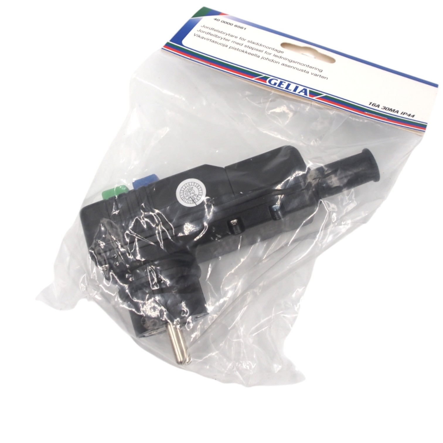 Gelia apsauginis kištukas su nuotėkio srovės jungikliu (RCD), IP44