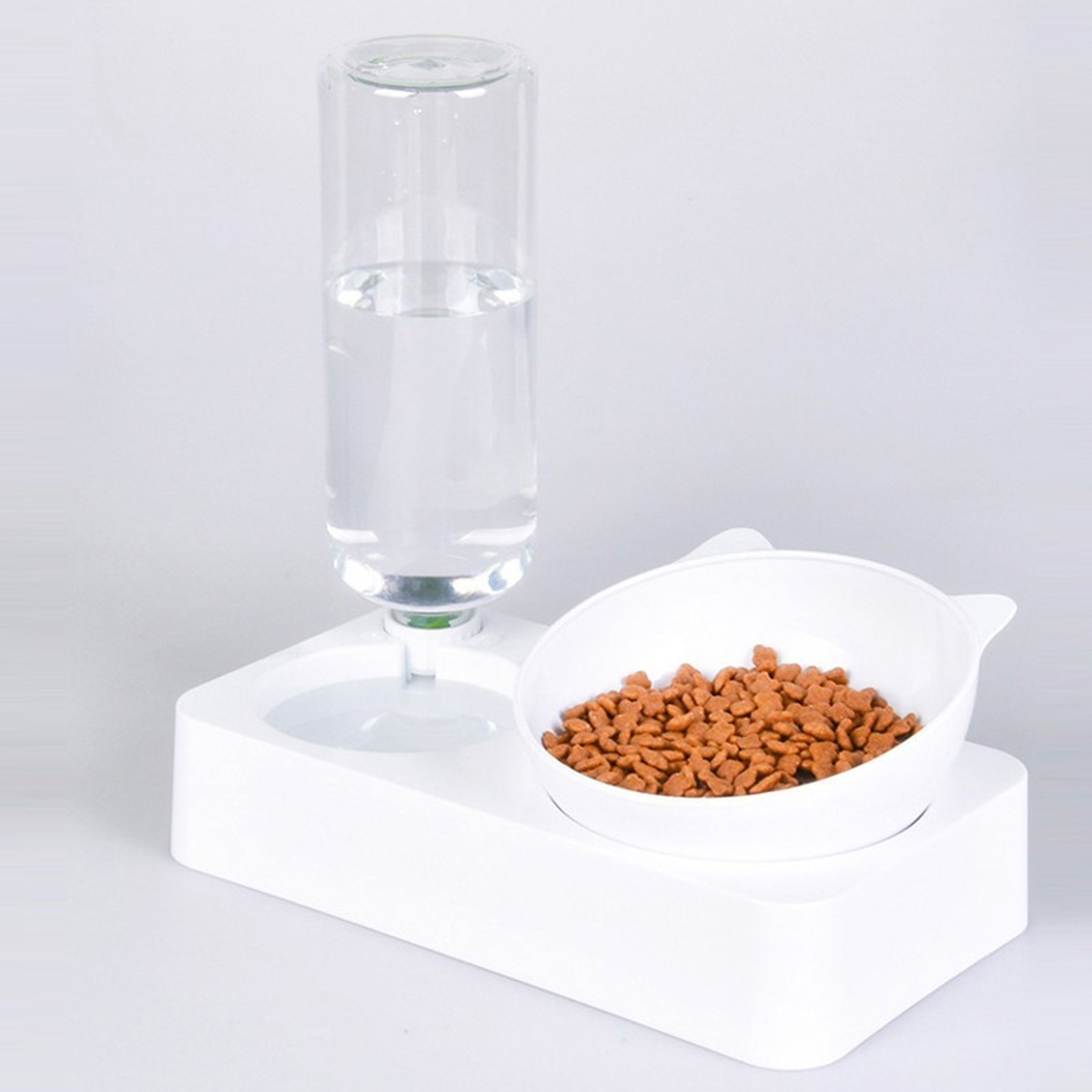 Automatinis vandens dozatorius ir kačių maisto dubuo. Dubens pasvirimas 15 laipsnių kampu leidžia mūsų augintiniui daug lengviau valgyti maistą. 0,5 l vandens butelis suteikia jūsų augintiniui nuolatinę prieigą prie vandens. Dėl specialaus vožtuvo prietaisas automatiškai įpila vandenį į dubenį. Kompaktiškas dizainas puikiai tinka mažoms virtuvėms ir koridoriams.