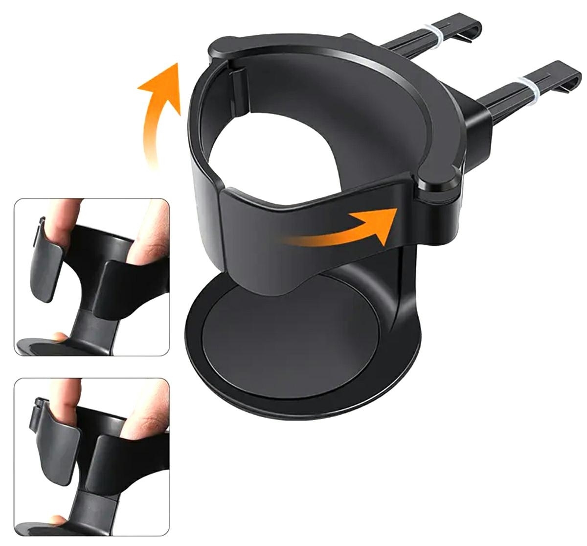 Automobilinis gėrimų laikiklis montuojamas ant ventiliacijos angos. Funkcionalus puodelių laikiklis automobiliui – sprendimas, kuris leis patogiai gabenti gėrimus. Gylio reguliavimas leidžia saugiau pritvirtinti laikiklį prie grotelių.