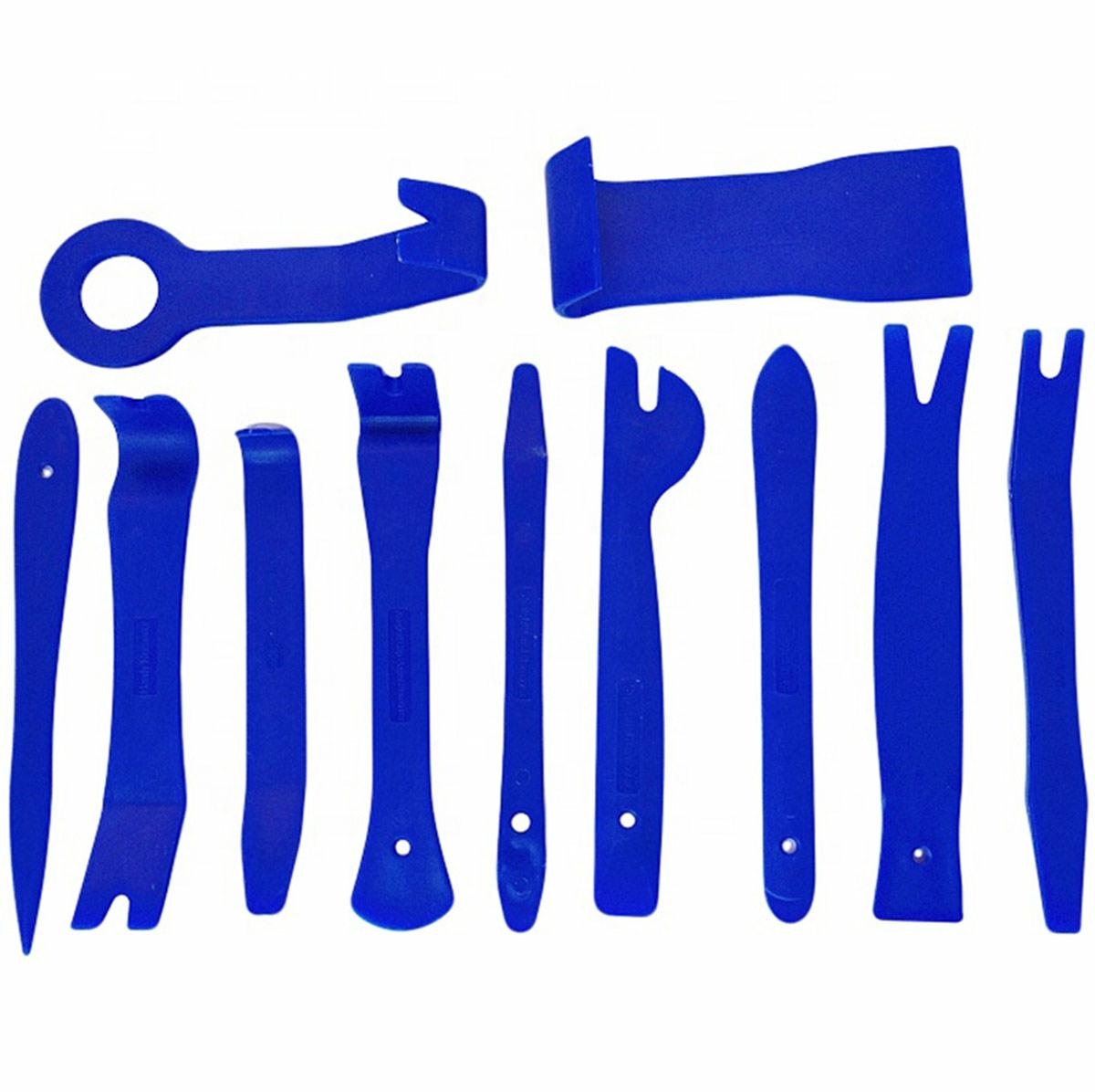 11 dalių įrankių rinkinys saugiam automobilio apmušalų nuėmimui. Mūsų traukikliai pagaminti iš tvirto ir patvaraus plastiko, kuris leidžia saugiai ir greitai nuimti apmušalus. Palyginti su pigiais ir nekokybiškais konkurencijos pasiūlytais traukikliais. Jau pirmą kartą bandant panaudoti konkurencingus traukiklius, įrankis sulūžo ir plastikas įstrigo sunkiai pasiekiamose vietose.