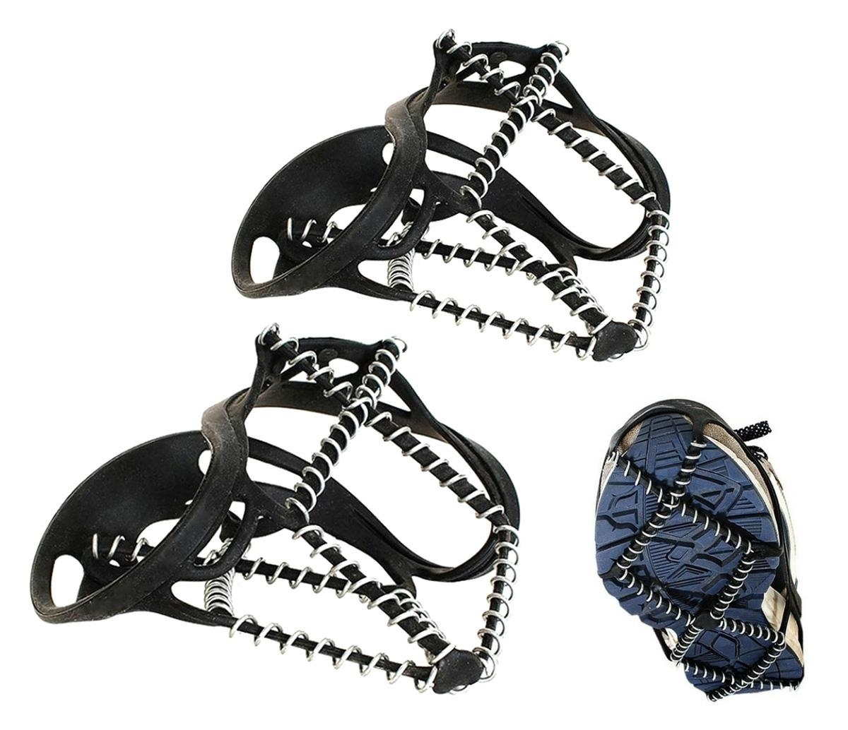 Lankstūs, neslystantys batų užvalkalai su grandine! Puikiai tinka žygiams miške ir kalnuose, taip pat žygiams sudėtingomis reljefo ir oro sąlygomis. Dėl grūdinto plieno grandinės jie efektyviai apsaugo nuo slydimo ir kritimo. Jie lengvi ir patogūs dėvėti, puikiai prisitaiko prie jūsų bato formos. Dėl silikono juos galima reguliuoti, kad tiktų keliems batų dydžiams (38–45) neslystant.