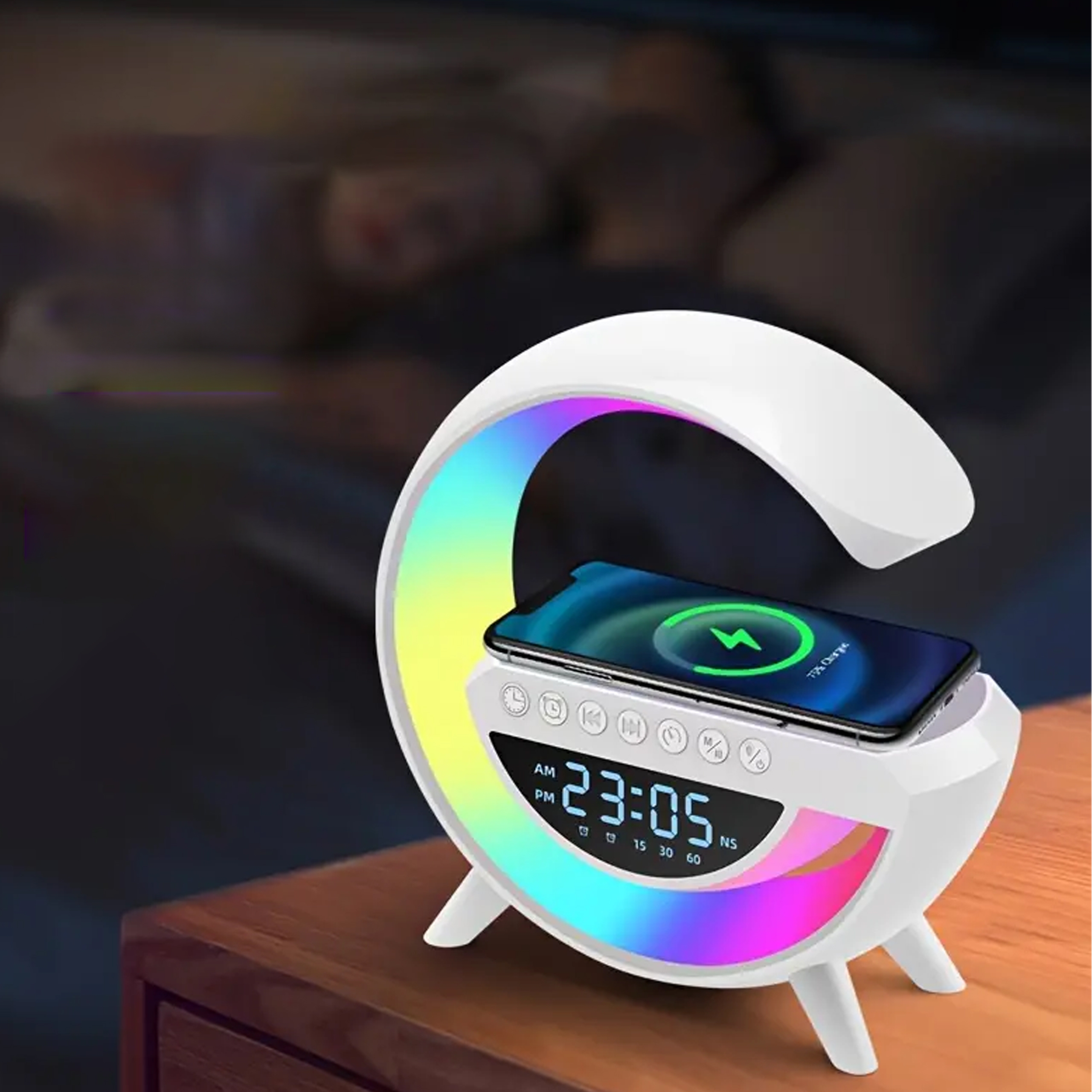Daugiafunkcinė lempa , laikrodis su QI įkrovikliu