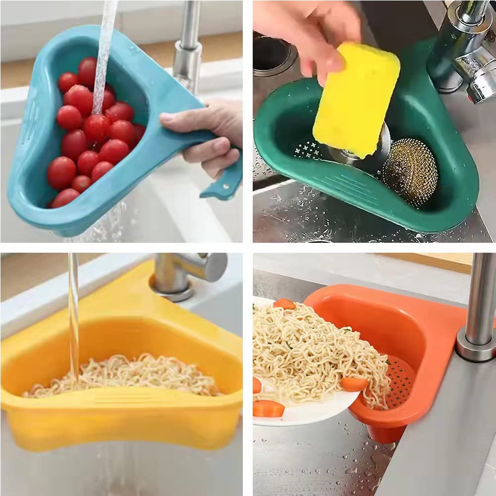 Funkcionalus virtuvės kriauklės kampinis krepšelis. Tai padeda išlaikyti virtuvę tvarkingą. Puikiai tinka kaip kempinių, šepečių ir plieninės vatos talpykla. Perforuotas dugnas leidžia nuolat išleisti vandenį.