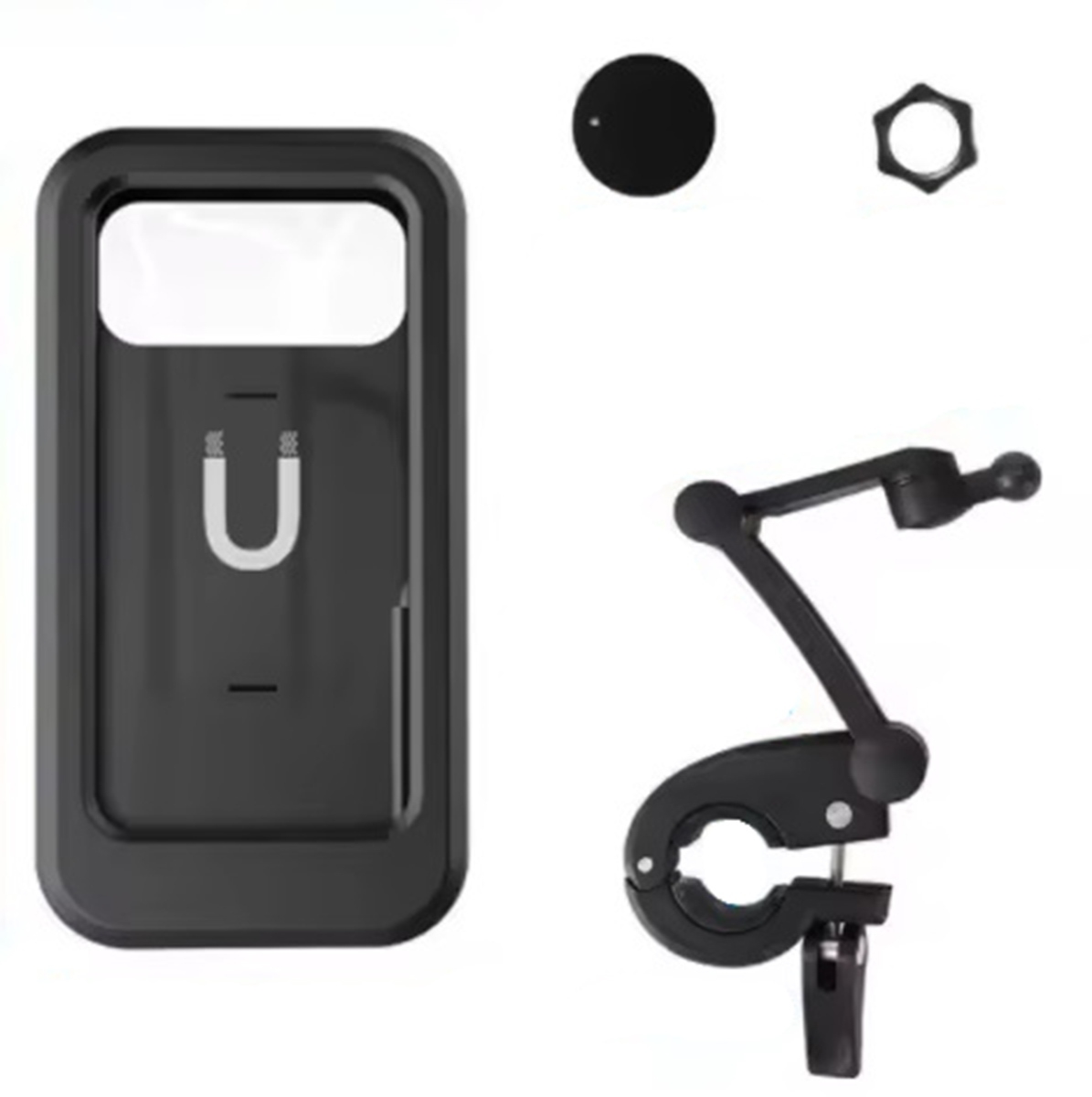 Universalus, vandeniui atsparus dviračio telefono laikiklis. Pagaminta iš aukštos kokybės plastiko, atsparaus drėgmei ir sudėtingoms oro sąlygoms. Galimybė keisti rankenos plotį, suktis aplink savo ašį 360 laipsnių plokštumoje ir reguliuoti pasvirimą pagal vartotojo poreikius. Tinka visiems išmaniesiems telefonams, kurių ekrano dydis yra nuo 4,5 iki 6,7 colių. Dangtis priekyje veikia su jutikliniais ekranais, todėl lengviau naudotis išmaniuoju telefonu lyjant. Lengvas tvirtinimas ant dviračio vairo naudojant spaustuką.