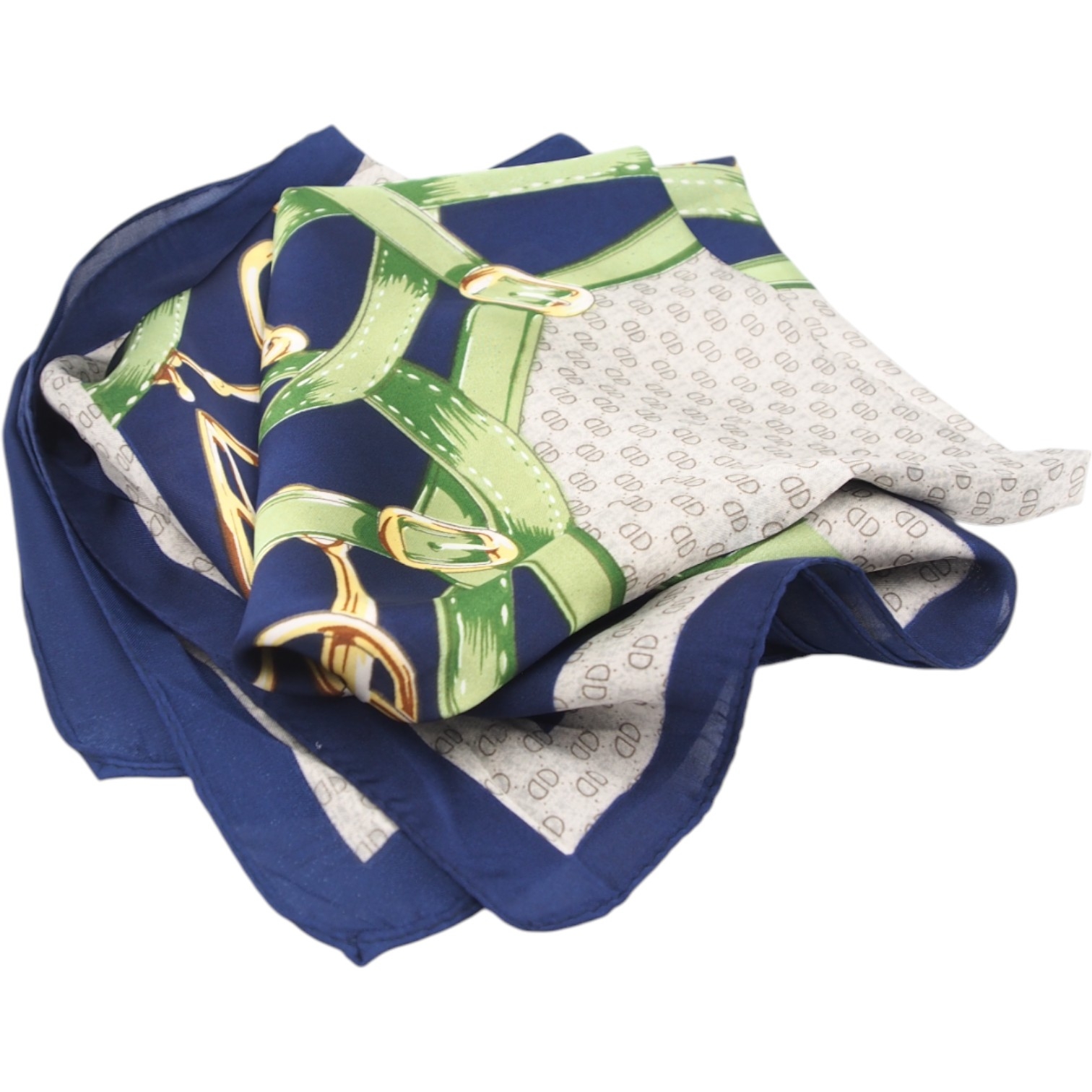 Ieškote akcento, kuris suteiktų jūsų įvaizdžiui rafinuoto žavesio? Ši kvadratinė skarelė – puikus pasirinkimas! Tamsiai mėlynas fonas, puoštas žalių dirželių ir auksinių sagtelių motyvais, išryškina prabangos ir klasikos derinį, o šviesi kraštinė su subtiliu ornamentu suteikia dar daugiau išskirtinumo.